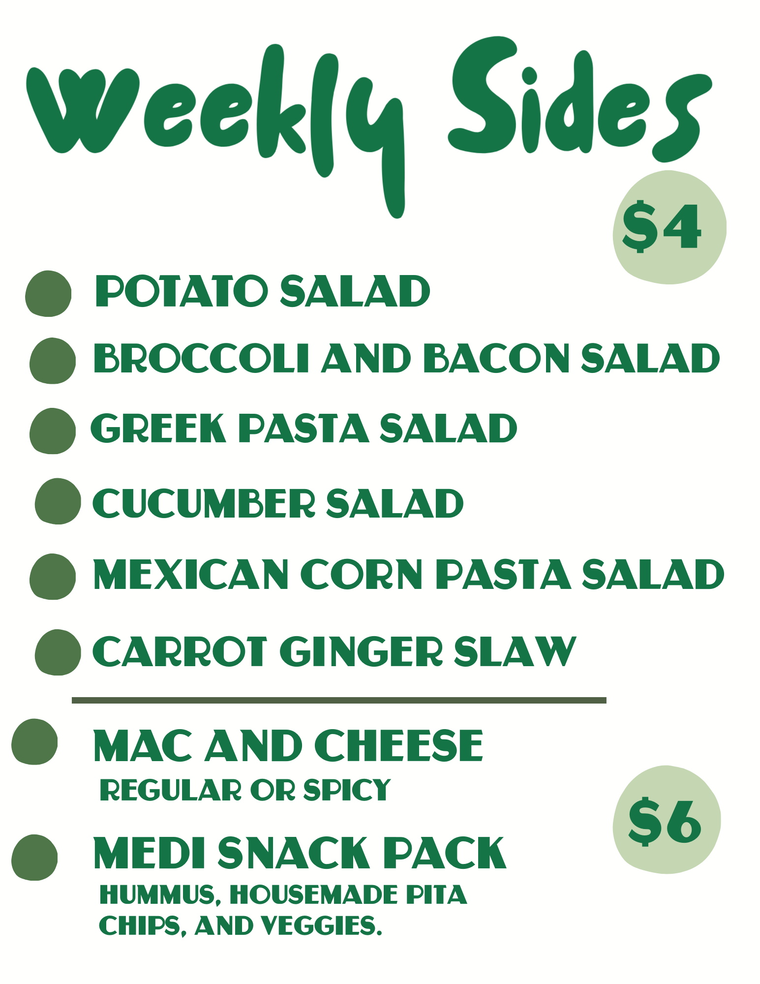 Check our deli case for new additions and weekly specials!